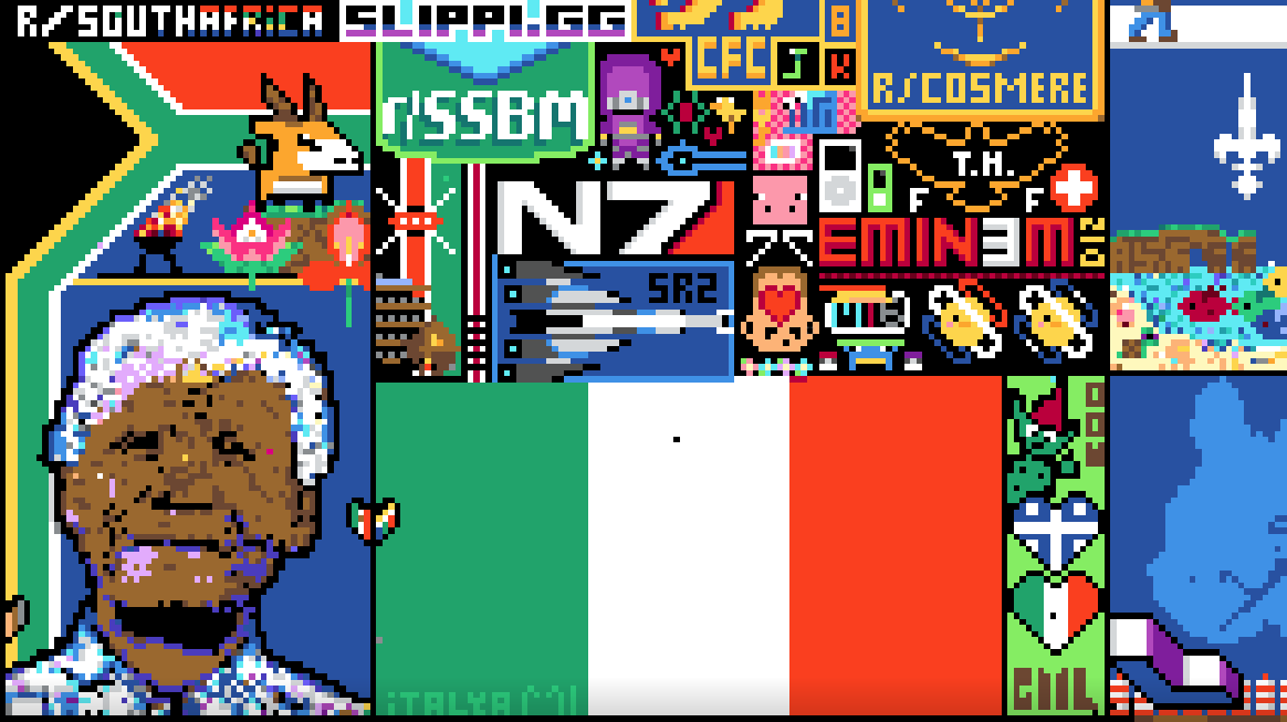 Le 1er avril, a commencé “la guerre des pixels” sur le réseau social Reddit. À raison d’un pixel par personne toutes les cinq minutes, chaque communauté du monde a pu contribuer à réaliser une grande fresque en pixel arts, qui restera figée sur Internet pendant 5 ans. Reddit est le plus grand forum de la planète.… Poursuivre la lecture NELSON MANDELA, ÉTENDARD DE L’AFRIQUE SUR REDDIT