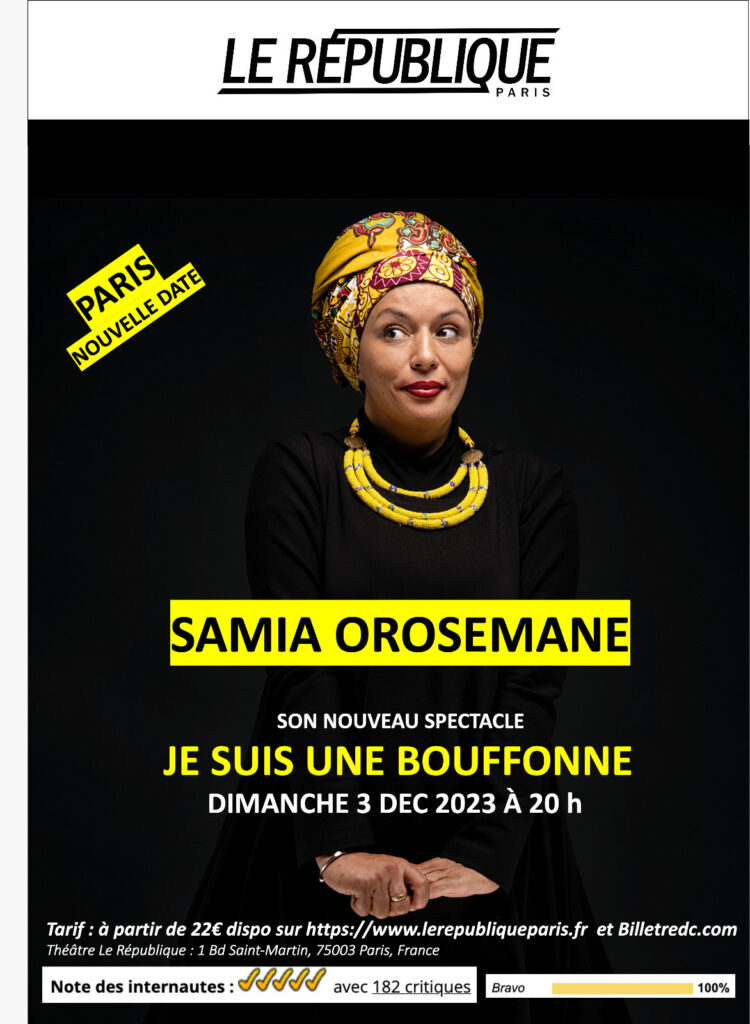 L’HUMORISTE SAMIA OROSEMANE VOUS INVITE À SON NOUVEAU SPECTACLE