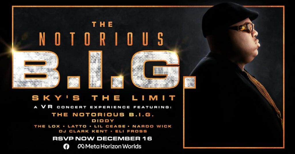 Generation.fr nous apprend qu’à l’occasion du 50ème anniversaire de The Notorious B.I.G., assassiné en 1997 à Los Angeles à seulement 24 ans, le metaverse Horizon Worlds de Meta, la maison mère de Facebook et Instagram, va héberger un concert VR de la légende du rap. Le show, intitulé “The Notorious B.I.G. Sky’s The Limit : A… Poursuivre la lecture LE METAVERSE RESSUSCITE UNE LÉGENDE DU RAP AMÉRICAIN